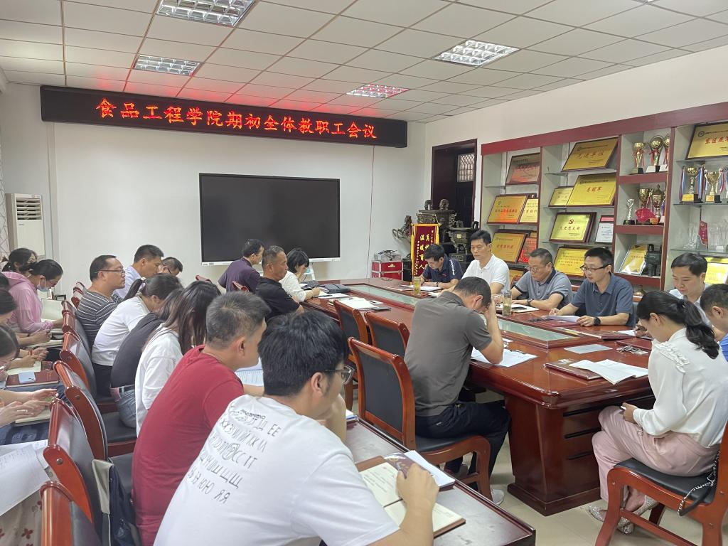 9月4日下午,食品工程学院在学院会议室召开全体教职工大会,通报暑期工作进展情况,部署安排新学期期初及学期重点工作。食品工程学院党政领导及全体教职工参加会议。会议由学院党委书记付光玺主持。