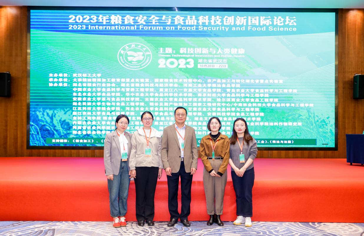 为贯彻落实党的二十大精神和全国粮食和和物资储备工作会议精神以及“藏粮于地、藏粮于技”战略,推动粮食产业链、价值链、供应链“三链协同”,夯实粮食加工储藏科技支撑,提高粮食安全保障能力,促进粮食营养高值化发展和粮食科技成果推广转化应用,由中国农业大学食品科学与营养工程学院、河南工业大学粮油食品学院、安徽农业大学茶与食品科技学院、安徽科技学院食品工程学院等单位协办的“2023年粮食安全与食品科技创新国际论坛大会”于2023年10月20日-22日在湖北武汉召开,我校食品工程学院院长杜传来和院青年教师杨丽萍、于鲲、李培燕、杨玉玲应邀参会。