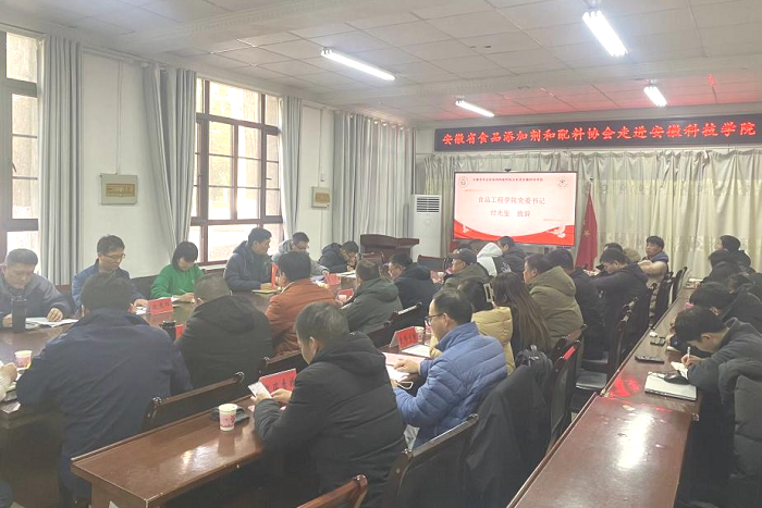 12月22日,食品工程学院食品营养与安全系教工党支部在凤阳校区举办了“安徽省食品添加剂和配料协会走进安徽科技学院”活动。食品工程学院党委书记付光玺,院长杜传来应邀出席。会议由协会秘书长杨文明主持。