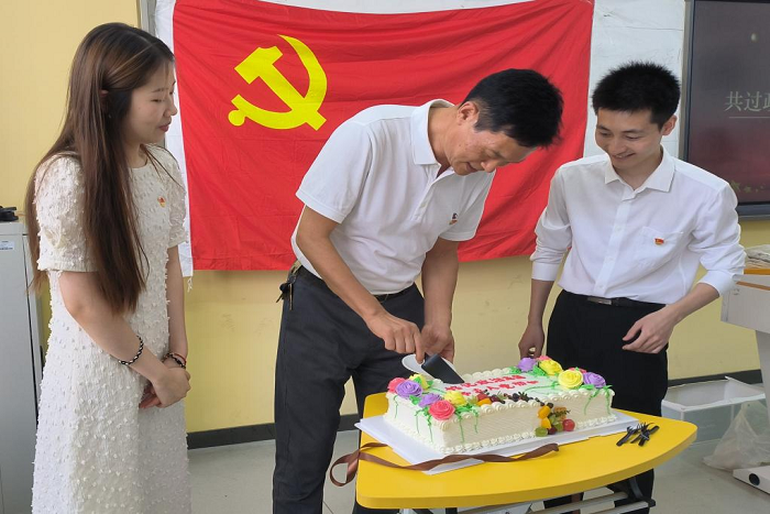 活动中,全体党员观看了党课视频《献给毕业生:愿你们廉洁从业,逐梦山海》,进一步坚定了初心使命,凝聚了奋进力量。视频结束后,参会教师党员为毕业生党员和新发展党员佩戴了党员徽章,党委委员分批向毕业生党员和新发展党员颁发了“政治生日”卡。在现场,党员代表阮芹悦和王春悦用歌声传递了对毕业生党员的深深祝福,表达了对毕业生党员的美好祝愿和期许。新发展党员向毕业生党员赠送了纪念贺卡,用文字传递了他们对学长学姐们的敬意和感激。在欢声笑语中,付光玺切下了一块块蛋糕,送给了毕业生党员。可口的蛋糕,也在传递着学院对毕业生们未来“如鱼得水,胜蜜糖甜”的殷殷祝福。全体党员也在付光玺的带领下庄严肃穆的重温入党誓词活动,使现场的每一位党员都再次接受了心灵的洗礼,产生了强烈的共鸣,加强了全体党员的党性修养。