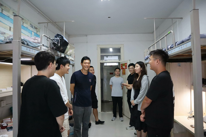 9月1日下午,付光玺带领学院党政办主任赵传磊、研究生秘书彭钢与研究生辅导员李彤彤等一行深入学生宿舍看望新生,亲切慰问刚刚踏入校园的新同学们,细致了解新生的适应情况。走访过程中,付光玺耐心细致地倾听每一位新生的心声,从学习规划到生活琐事,无不尽心解答新生的疑惑与期待。各位老师为新生适应新的学习和生活环境分享了宝贵的经验与建议,鼓励新生们勇于面对未知挑战,坚持梦想、不断前行。这份来自学院的关怀与倾听,让新生们深切感受到了深深的温暖与归属感,也为大家在安科的新征程上努力奋进增添了无限的动力与信心。