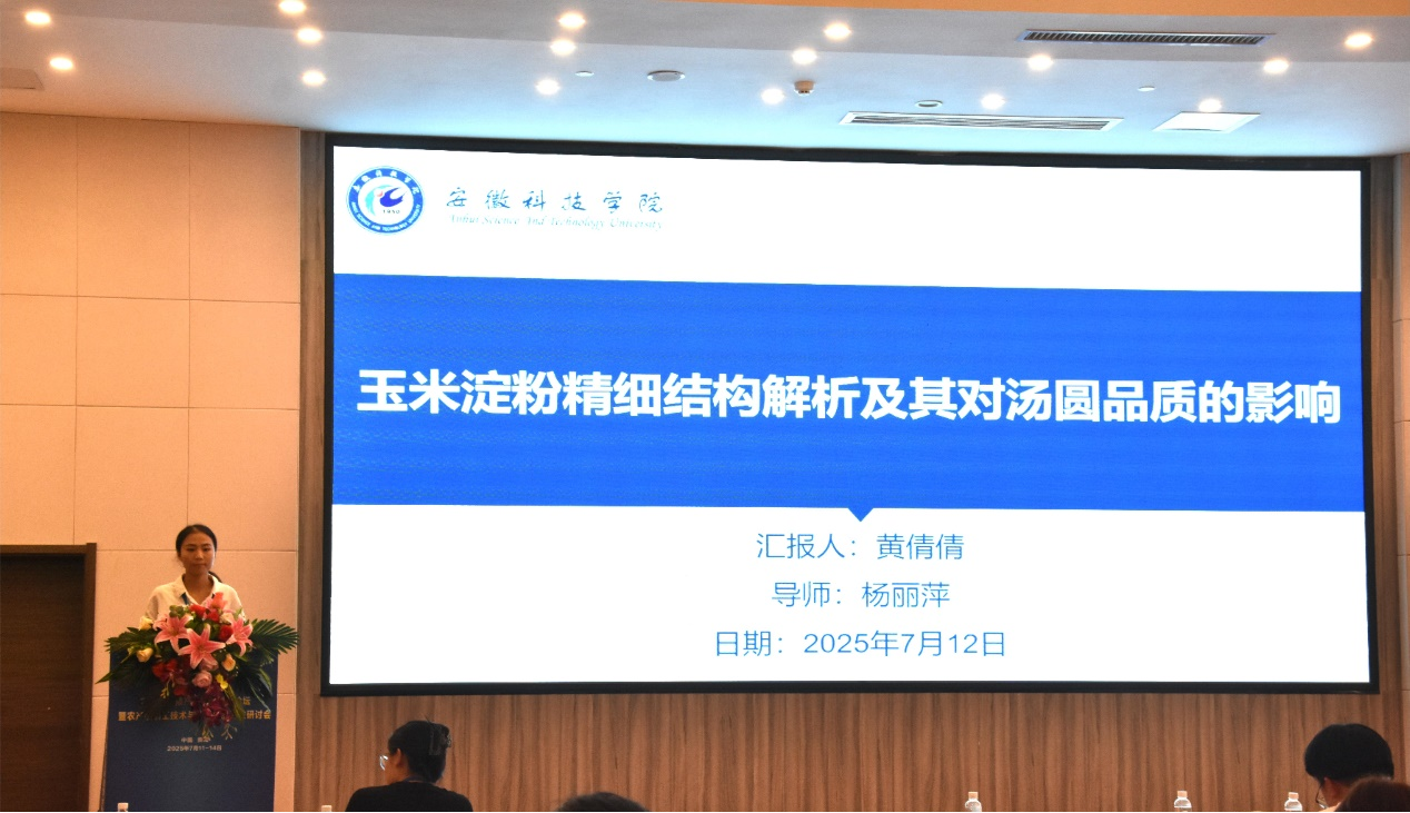 黄倩倩以“玉米淀粉精细结构解析及其对汤圆品质的影响”为题在会上作学术报告。该研究以我校自主培育的糯玉米为研究对象,表征了新型玉米的结构和性质,解析了支链淀粉结构与玉米粉性质及汤圆品质之间的关系,揭示了玉米粉制成的汤圆的品质特性,从而解析了糯玉米及甜糯玉米淀粉结构、性质与玉米粉性质间构效分析及对汤圆品质的影响机制,为糯玉米和甜糯玉米在产品开发中的可行性提供参考,有利于推广我校自主培育的玉米新品种,促进玉米产业的发展。