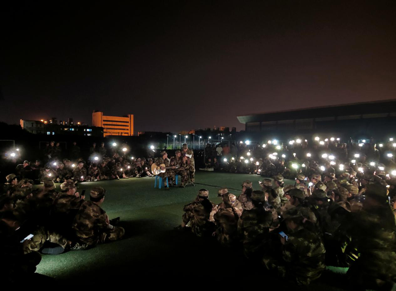 当表演结束,教官们带领新生进入军营文化生活的欢乐时光——拉歌。两个连队之间进行军歌之间的比拼,现场的新生们积极互动,气氛融洽,一首首《团结就是力量》、《绿色军营》......更是点燃了训练场的激情,一天的疲劳也随着歌声逐渐散去。(特约通讯员:时韩荣 审核:付光玺)