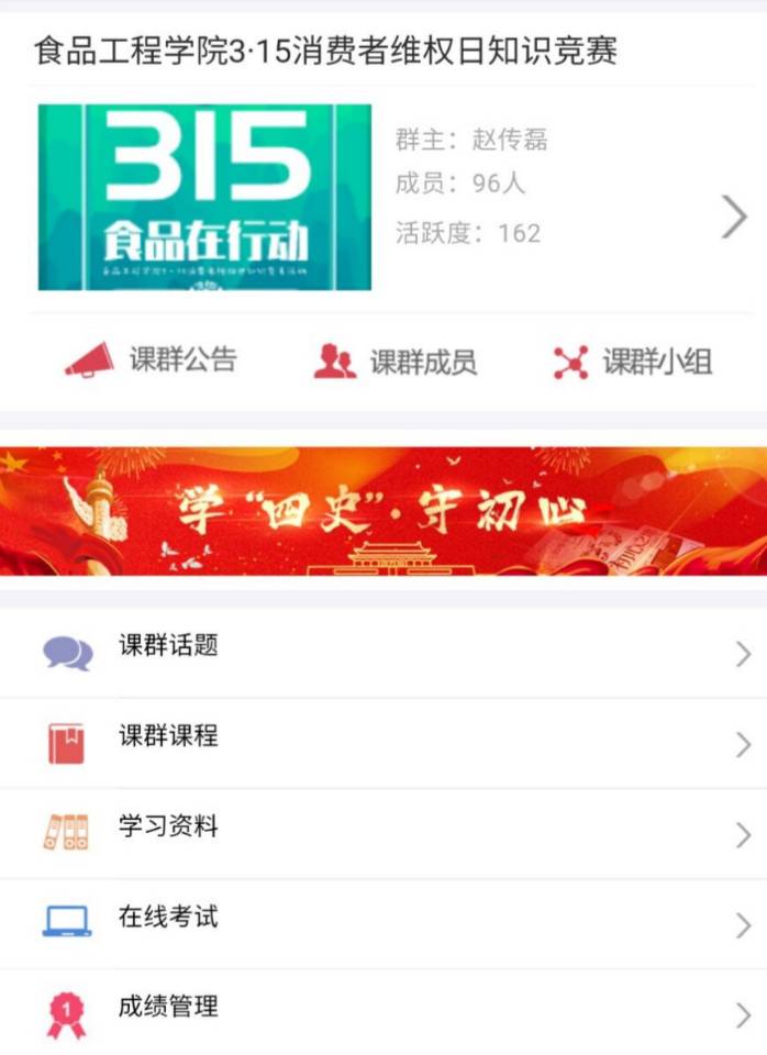 本次活动受疫情影响,食品工程学院活用易班平台,将线下活动转移至线上开展。通过创建“食品工程学院3·15维权知识竞赛”优课课群,利用课群中丰富的课程、学习资料、考试等内容开展了一场激烈的线上知识竞赛。院易班工作站根据竞赛内容,设立完整的考试要求,提供了一个优秀的竞赛平台。本次竞赛共有76名学生参加,获得一等奖1名、二等奖2名、三等奖3名、优秀奖10名。