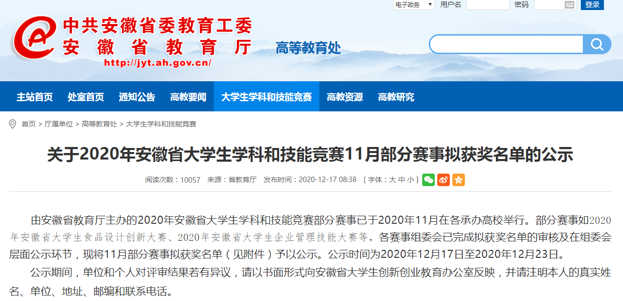中国足彩网: “凤宝杯”安徽省大学生食品设计创新大赛,学院有十件参赛作品被推选参加“凤宝杯”安徽省大学生食品设计创新大赛,获一等奖4件、二等奖3件、三等奖1件。2020年 “三只松鼠杯”安徽省食品设计创新大赛,学院参赛作品共获一等奖2项,二等奖1项,三等奖6项,优秀奖1项。