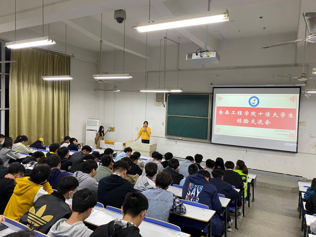 食品工程学院“十佳大学生”经验交流会的举办意在全面推进社会主义荣辱观教育和进一步加强学院学风建设,深入学习、宣传食品工程学院优秀大学生的先进事迹,使得广大同学能够从身边人、身边事感受到先进典型的模范带头作用,更加明确自己的学习目标和努力方向。(特约通讯员:时韩荣 审核:付光玺)