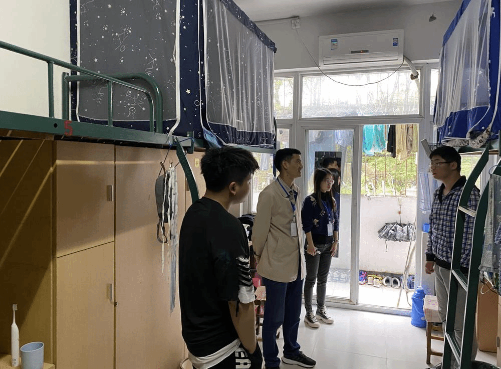 建党百年之际,为进一步加强学生宿舍管理,了解学生的宿舍生活情况,提高安全意识。5月12日下午,食品工程学院党委副书记王广良、专职辅导员吴玘在院学生会成员的陪同下走访学院学生所在宿舍区,开展宿舍安全卫生检查和外宿排查活动。