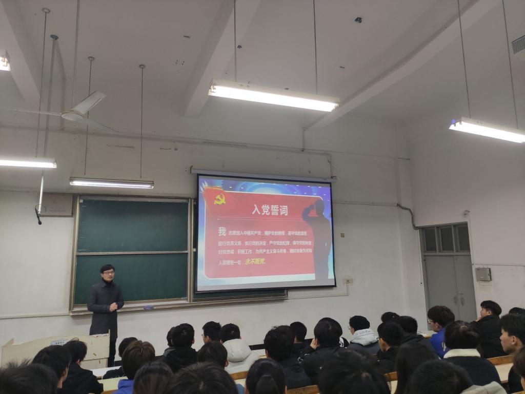 赵传磊从“党的基本知识”、“大学生为什么要入党”、“大学生如何端正入党动机”以及“入党程序注意事项”等四个方面为大家讲解了入党知识。他强调,今年是中国共产党成立100周年,百年恰是风华正茂,广大同学要坚定理想信念,端正入党动机,认真学习党的基本理论和基本知识,认真学习党史、新中国史、改革开放史、社会主义发展史,体悟和深刻认识党的百年奋斗的初心使命和重大成就,刻苦学习专业知识,积极实践,以实际行动积极向党组织靠拢。要进一步增强“四个意识”、坚定“四个自信”、做到“两个维护”,进一步增强爱党爱国爱社会主义情怀,培育和践行社会主义核心价值观,坚持感党恩、听党话、跟党走。