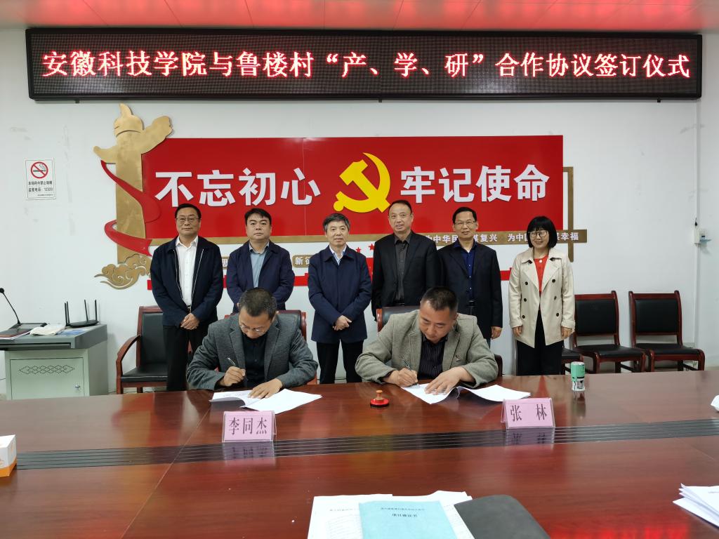 食品工程学院院长杜传来、科研处副处长李同杰代表学校分别与鲁楼村、淮北市相山区芳香花卉苗圃农民专业合作社签订了产学研、菊花深加工合作协议。(特约通讯员 杨勇 审核 杜传来)