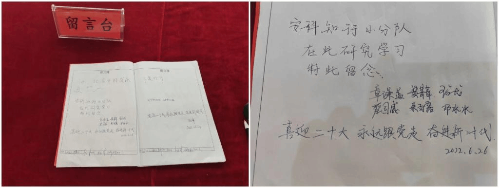 最后,实践团来到那里的留言台,签名留念,在下笔的那一刻实践团也真正领悟了无论面对多大的困难,都要始终心怀梦想;无论面对多大的阻力,都要有勇气追求梦想;无论现实起点多低,都要下定决心付诸实践,这一中华民族伟大梦想精神照亮小岗村改革之路的真实写照。
