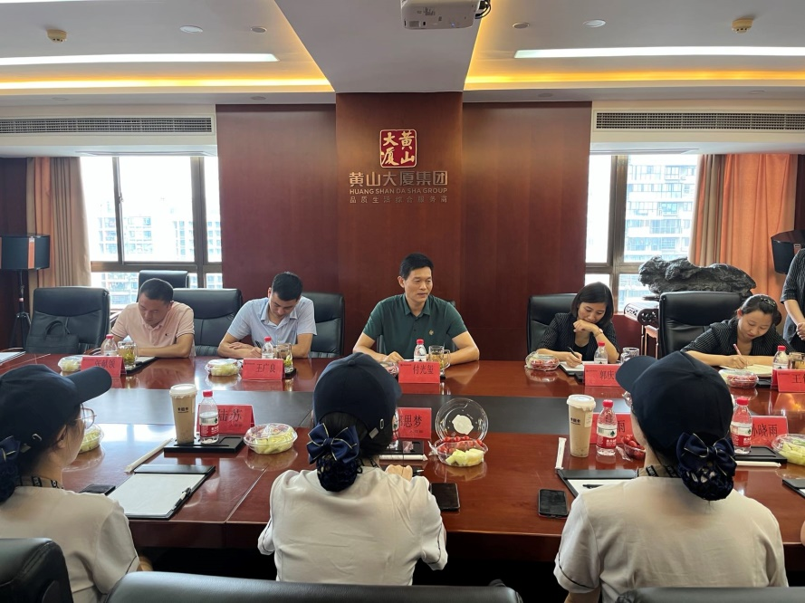 在集团公司会议室,付光玺一行与企业管理层、实习学生进行了座谈。会上,8位实习生分别就实习岗位谈了个人的体验和收获,并将实习过程中存在的一些问题等向企业领导和老师做了汇报。付光玺认真听取了学生的汇报和反馈,看到同学们精神状态都很饱满,肯定了这次企业实习意义,指出实习是学生接触社会的第一步,要在自己的岗位上学习实践技能,工作中主动学习,了解本部门的运行规律、管理方法,提前谋划个人职业规划,将实习与就业结合起来,通过优秀表现,争取就业机会。他说,黄山大厦是一家有文化、有内涵、有强烈社会责任感的全国知名餐饮公司,在团餐领域成绩斐然,影响力大,下一步,希望企业文化融入到课堂中去,企业高层及培训专家可以深入课堂拓展校企合作课程的开发,真正将企业所能、所需与人才培养相结合。王广良指出,实习是一次难得的职业生涯体验,鼓励大家继续端正态度,完成实习安排,正确看待工作的辛苦和付出,不断奋斗,坚信幸福生活要靠自己打拼,通过努力工作和虚心学习展现安科学子风采。
