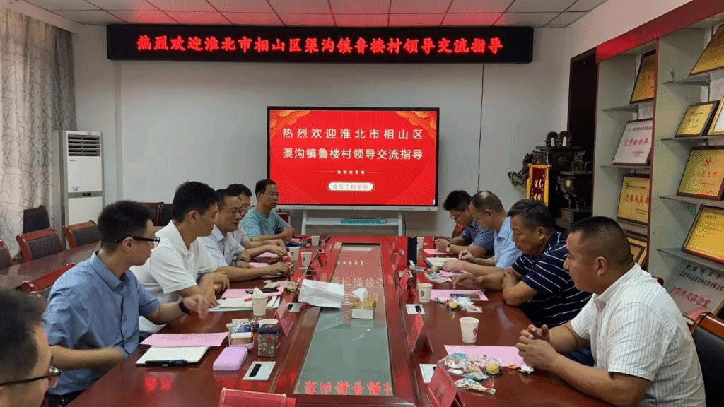 交流会上,食品工程学院党委书记付光玺致欢迎辞,院长杜传来介绍了学院在科学研究和服务地方产业发展方面的情况。任健代表渠沟镇对学院助力乡村特色产业发展给予的大力支持表示感谢,表示将根据校企合作需要给予大力扶持,陈桂前重点介绍了鲁楼村产业发展背景及现状,双方就鲁楼村特色产业发展从技术层面进行了深入交流,并共同表达了推进深入合作实现校企合作多方共赢的发展愿望。食品营养与安全系教工党支部书记、安徽省果树产业技术体系果品加工与流通岗位专家杨剑婷介绍了“果蔬加工团队”对该项目前期已经开展的工作,并展示了研发的产品。