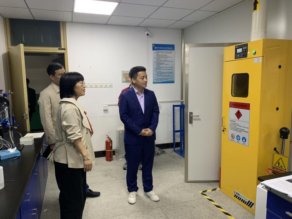 交流会结束后,彭亚洲参观实验室。王广良介绍了学院实验室建设、实践教学、实验仪器设备使用等情况。