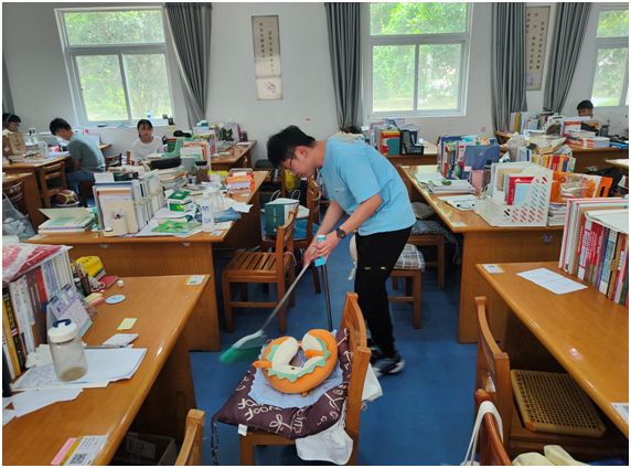 为给考研的同学们营造一个良好的学习环境,同时为学校的公共卫生尽一份绵薄之力,6月3日中午,食品工程学院学生会组织志愿者在考研自习室进行打扫自习室活动。