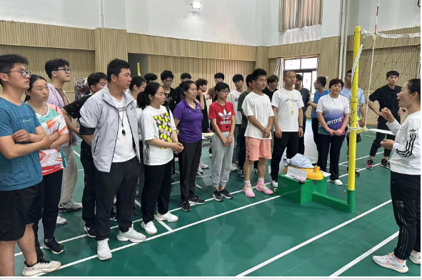 蚌埠市气排球协会会长张瑜等参加开班仪式。蚌埠市气排球协会秘书长、校体育教师李影负责本次培训策划筹备工作,在开班仪式上对本次培训筹备情况、课程安排等情况进行介绍。校体育教师宋述雄担任本次培训的主讲教师,并在开班仪式上介绍了气排球活动的功能及其“火”的原因。