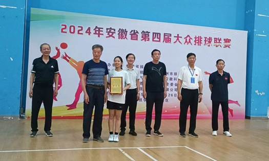 5月26日下午,安徽省第四届大众排球联赛在我校凤阳校区体育馆顺利落幕,安徽省排球协会会长张颂元、副会长韩伟、安徽科技学院体育教学部党总支书记王松华、裁判长陈先平、仲裁尚群、张来成出席闭幕式并为获奖代表队颁奖。