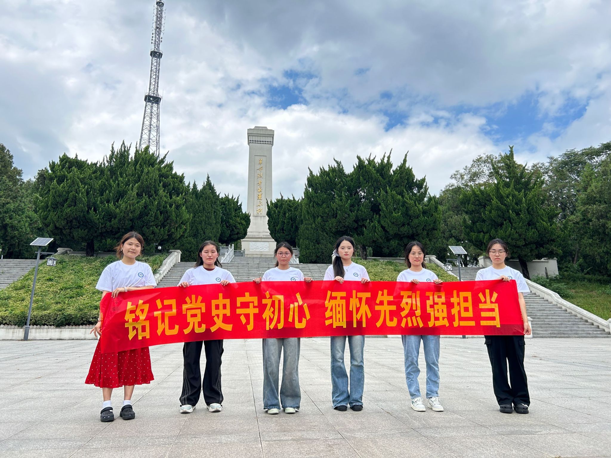 8月5日,实践团队成员在凤阳烈士陵园祭奠英烈,团队成员在“铭记党史守初心 缅怀先烈强担当”横幅下整齐列队,默哀致敬、敬献花篮,在纪念碑前重温入团誓词,表达对革命先烈的的缅怀之情。
