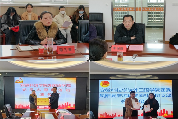 校地双方围绕党建发展、团建合作、社会服务、学生成长等方面开展深入交流,达成了合作意向。蔡为青向楼南社区授予“安徽科技学院外国语学院党员志愿服务站”牌匾,宋兵兵和王丹丹签订校地志愿服务合作协议。