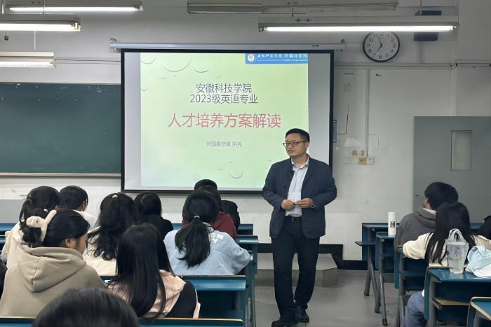 人才培养方案的解读是外国语学院新生入学教育的重要内容之一,使学生对自身今后的学习和发展方向有了比较清晰的认识,对做好大学生大学生涯规划具有积极的指导意义。(特约通讯员:陈慧中;摄影:于湘;审核:蔡为青)