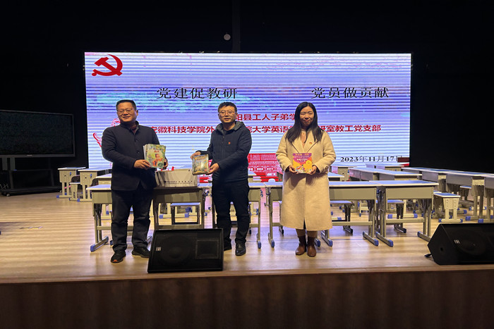 为充分发挥高校党员教师先锋模范作用,助力地方中小学教育发展,11月17日,外国语学院大学英语第二教研室教工党支部联合英语专业学生党支部赴凤阳县工人子弟学校参加综合英语实验教学研讨活动,并为凤阳县工人子弟小学二(五)班捐赠了绘本图书。