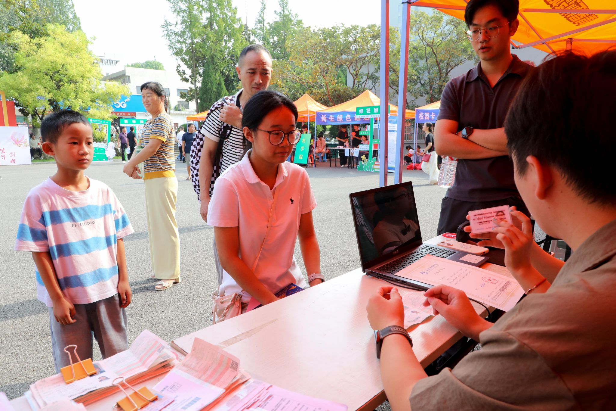 学校专门设立了党员先锋岗,为新生提供贴心服务。在爱心物品领取处,准备了开水瓶、水桶和衣架等生活物资,供有需要的新生免费取用。一位来自外省的新生表示:“刚到学校就感受到了无微不至的关怀,这些贴心的服务让我很快消除了陌生感。”