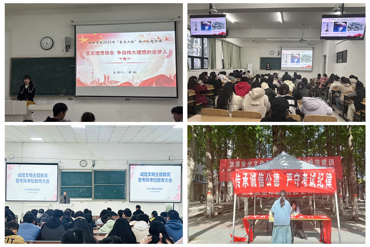 分年级主题教育提素养,全面育人向未来。学校坚持以分年级主题教育为抓手,以解决好学生面临的实际问题为突破口,切实加强学生思想道德建设,不断增强大学生思想政治工作针对性和实效性。大一以“诚信?文明”主题教育活动促学生行为养成,大二大三以“责任?成才”主题教育活动促学生全面发展,大四以“感恩?奉献”主题教育促进毕业生工作。