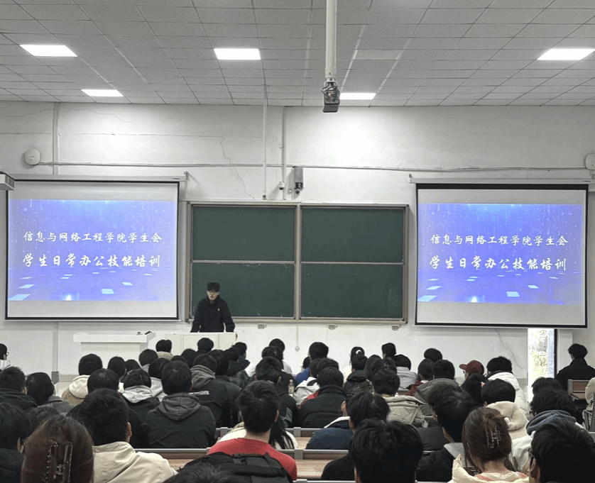 为加强学生干部队伍建设,推动学生干部工作高效规范。11月21日中午,信息与网络工程学院学生会在致知楼B111举办“学生干部日常办公软件技能培训”活动。学院学生会指导老师崔北坤出席本次会议,2025级全体学生干部、学生会、分团委及易班工作站全体成员参加本次活动,会议由崔北坤主持。