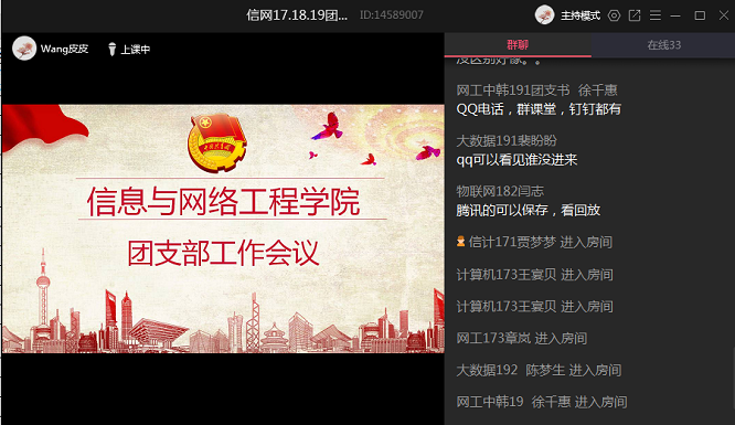 为提升基层团组织活力,规范评选表彰工作。4月17日,信息与网络工程学院线上召开2020年团内表彰工作推进会议。2017、2018、2019级各班团支部书记参加会议,会议由专职辅导员王培培主持。