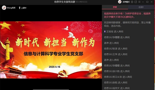 4月21日-22日下午,信息与网络工程学院各学生党支部通过QQ群课堂、群视频等方式进行政治理论学习,不断推进支部政治理论学习入脑入心。