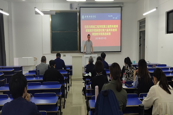为加强青年教师队伍建设,提高青年教师教学水平,信息与网络工程学院于5月19日下午在尚行楼C202教室举办了第三届青年教师课堂教学竞赛暨校第六届青年教师课堂教学竞赛选拔赛,校教学督导苏兆龙副教授,崔峰副教授,系主任段汉根副教授,张家昕副教授,王传安副教授担任评委。活动由副院长曹浩主持,学院部分老师现场观摩比赛。