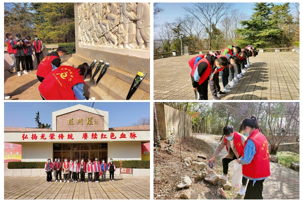 志愿者们怀着无比崇敬的心情来到烈士陵园,面对巍峨耸立石柱上的“革命烈士永垂不朽”,纷纷停下脚步,注目着、缅怀着,将手中的菊花献给烈士们表达敬意,大家都自发地向墓碑鞠躬默哀,以表达对先烈的深切悼念和哀思。随后,大家来到陈列馆,通过对史料、实物以及图片了解,感受那段波澜壮阔的光辉历程,把烈士们的英雄事迹和革命精神深深地铭刻于心底。活动结束后,同学们还协助工作人员进行了园林清扫。
