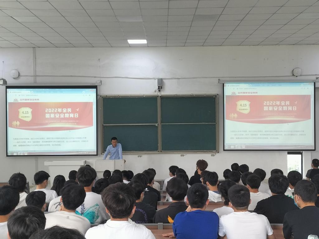 活动前,陈凯向学生们介绍了国家安全法、反分裂国家法、国防法、数据安全法、网络安全法等国家安全相关法律,并结合国家安全面临的新形势,指出了在广大同学中开展安全教育的重要性。活动中组织全体成员集中观看了《空天的利剑:地空导弹备份》、《海上巨无霸—航空母舰》、《 步枪的发展与未来》、《 山地雄鹰—直升机》、《 天空新主宰—无人机》等国防教育相关视频,简短震撼的宣传视频,加深了广大学生对国家安全的理解,让同学们深刻认识到国家安全的重要性,在学习生活工作中自觉维护国家安全。
