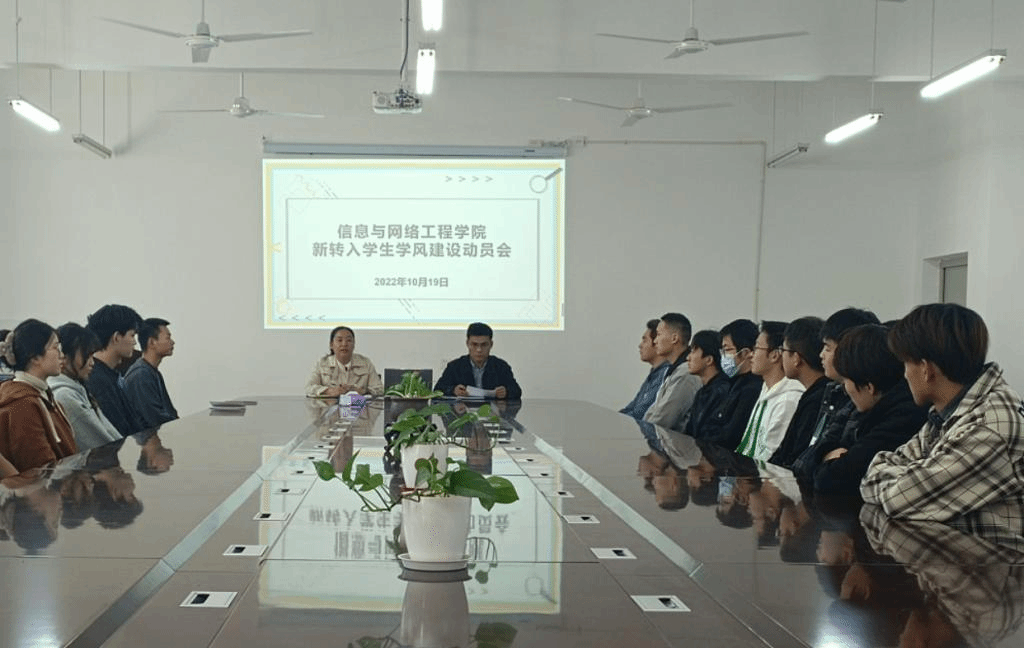 会上,韦乃学表达了对新转入同学的欢迎,介绍了信息与网络工程学院的历史发展、专业设置、师资及办公室分布、学院辅导员分工等学院基本情况。重点对各学科的专业特点、课程学习难度,学院考勤管理规定、学生干部“一票否决”制、学科竞赛等相关管理制度做了强调。向新转入的同学们提出三点希望:一是要积极主动、尽快适应新环境。主动与新班级的老师和同学多接触,办理好课程免补修的相关手续,全身心投入新阶段的学习生活;二是要遵规守纪、争当先进。要严守校院疫情防控、核酸检测、课堂考勤、宿舍管理等各项规章制度,争当优秀学生,建设学习型宿舍;三是要做好规划、继续努力。要树立新的目标,做好学业发展规划,实现自己的人生追求。