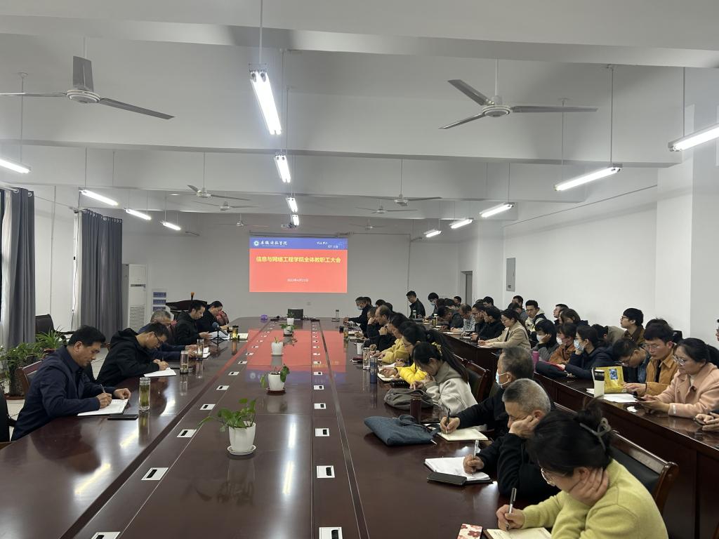 4月23日下午,信息与网络工程学院在尚行楼B418召开全体教职工大会。学院党政领导和全体教职工参加会议,会议由学院党委副书记、院长余宏杰主持。