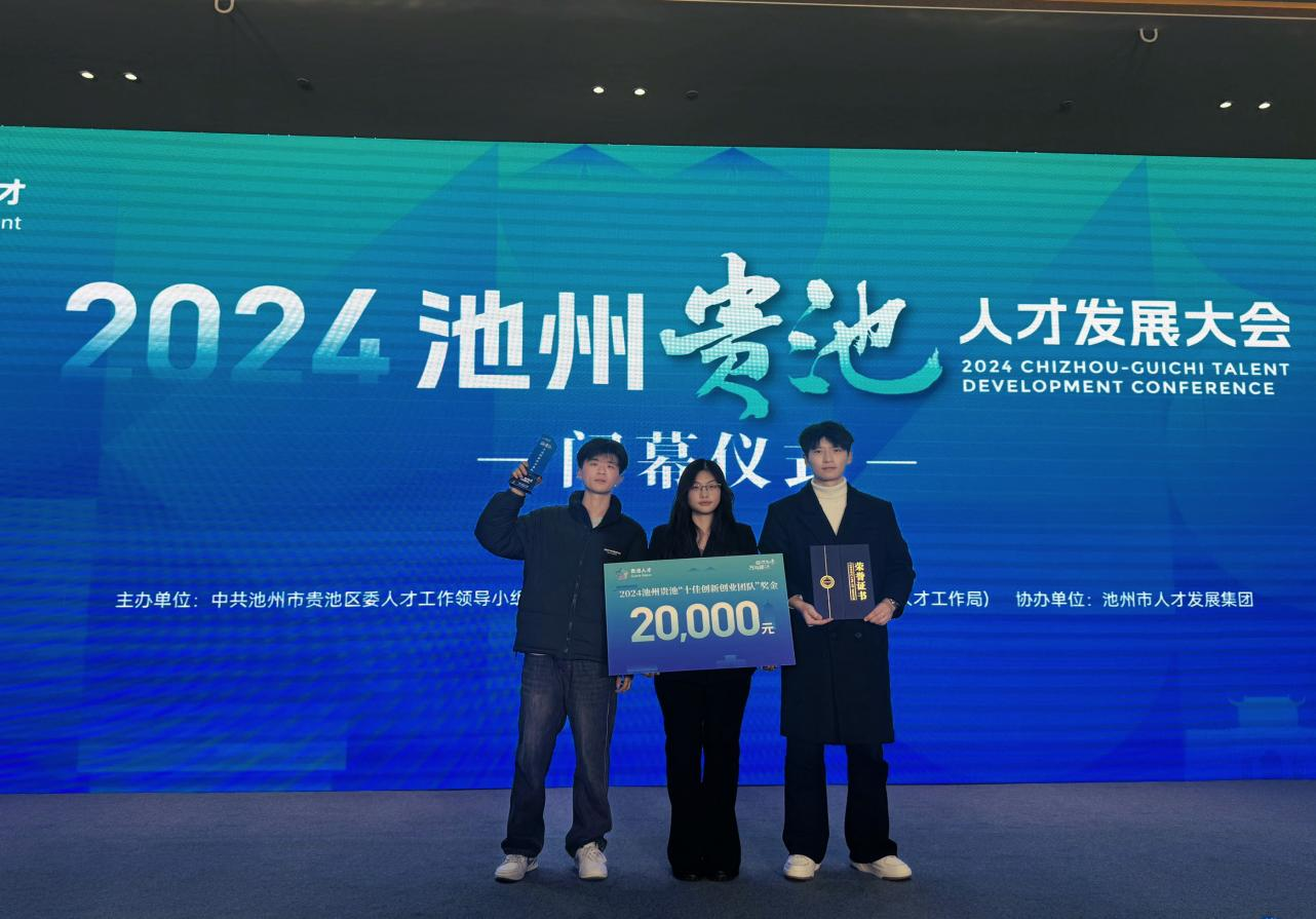 12月20日,2024池州?贵池“十佳创新创业团队”决赛在安徽池州市贵池区成功落下帷幕。我校信息与网络工程学院信息技术创新工程实验室(Information Technology Innovation Engineering Laboratory,ITIE)王伪蓉、夏俊杰、李世鹏等同学斩获大赛第一名,荣获池州市贵池区“十佳创新创业团队”。