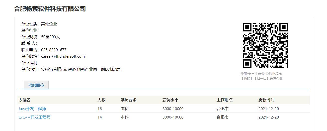 合肥畅索软件科技有限公司招聘信息