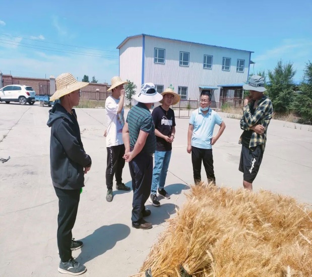 小麦收获期,在当地农业农村局的带领下和老师的切身指导下,队员们走进麦田,对阜康15万亩小麦进行大田测产。根据当地的农业农情,他们将所学的专业知识运用到农业生产中,做到“理论联系实际,教学结合生产”,身体力行地服务于乡村振兴。