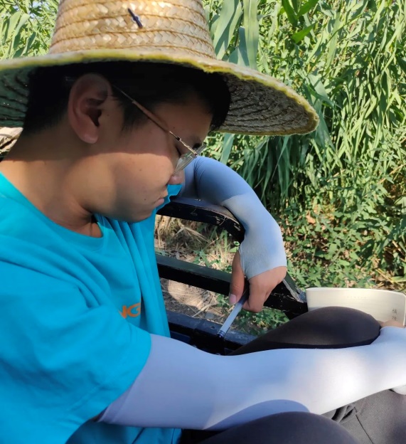 六月的天气,太阳正毒,晒得人汗珠往下直滚。即便如此,同学们依旧早出晚归,旨在顺利完成小麦收获期测产工作。队员们表示,“我们所继承的是老一辈农业科学家勇于创新、求真务实、脚踏实地、不怕吃苦的精神,我们所渴望的是在这一亩亩麦田,一片金黄的丰收喜悦中谱写属于当代农学人的崭新篇章,我们要做到把论文写在祖国的大地上!”