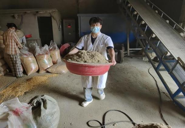 在走访当地养殖户时我们发现,大多数养殖户在冬春季时饲草料严重不足,饲喂羊时仅靠花生藤、油菜籽壳、玉米秸秆、枯稻干草进行饲喂,不仅适口性差难以保障怀孕母羊的营养水平,而且无法满足育肥羊的生长需要。因此,我们向当地农户提供了农作物秸秆生化颗粒饲料生产技术以及裹包青贮技术,从而保证优质饲草料供应的延续性。