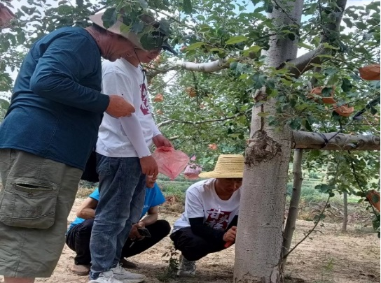 为充分发挥科技小院平台作用和专业优势,助力静宁苹果产业发展。服务团前往雷大镇和威戎镇就苹果树种植过程中病害防控中的“卡脖子”难题进行现场讨论与交流,详细介绍了苹果主要病害减药增效防控技术,并深入果园重点示范了苹果树腐烂病“喷水精准诊断技术”及“一壮、二降、三精准”和“刮治+双层涂药”减药增效绿色防控新模式与技术。累计指导示范果园10余个,培训2场,培训100余人。据当地果农反馈,学院科研团队前期研发的苹果主要病害绿色防控技术,为地方经济社会发展产生了积极的经济效益、生态效益和社会效益。