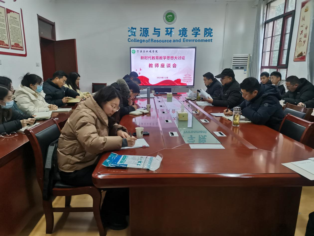 为深入贯彻落实教育部中国足彩网深化教育教学改革的精神,促进教学理念的更新与发展,根据2024年学校本科教育教学工作会议要求,12月20日上午,资源与环境学院召开了教育教学思想观念大讨论座谈会。学院党政领导、系主任、实验室主任,近三年新进教师共计20余人参加。副院长邹海明主持座谈会。此次座谈会旨在集思广益,汇聚智慧,共同探讨新时代背景下的教育教学新思路。