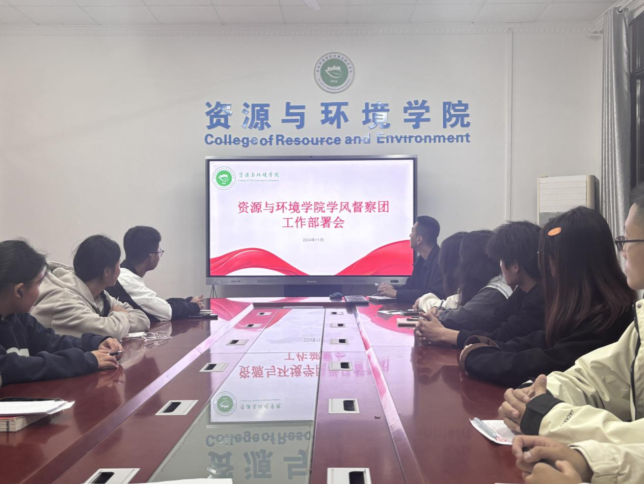 为贯彻落实学风建设年活动的工作要求,促进优良学风的形成,创建良好的育人环境,推动学生全面发展。11月11日晚,资源与环境学院在学院会议室召开学风督察团工作部署会。专职辅导员孙正浩出席本次会议,学风督察团全体成员参加会议,会议由孙正浩主持。