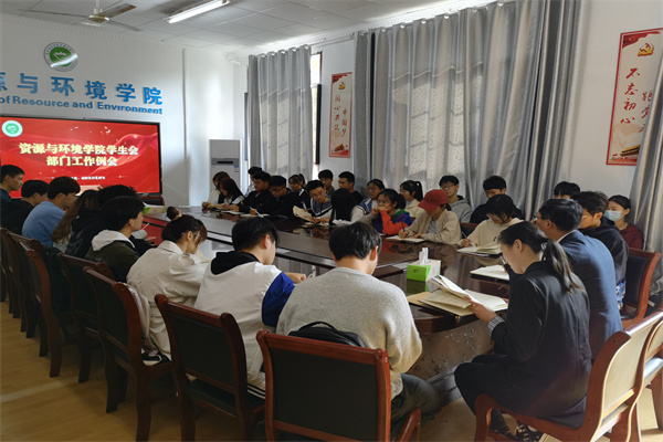 10月28日中午,资源与环境学院于东办公楼学院会议室召开学生会部门工作例会,党政办主任吴国良、学生会指导老师王丽萍出席此次会议,全体学生会部分成员及主席团成员参加此次会议。会议由吴国良主持。