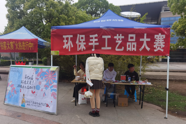 为增强同学们的环保意识,普及环保知识,传播绿色文明,建设校园环保文化,资源与环境学院于4月24日至5月1日在西区小广场举办了环保手工艺品大赛。参赛对象为资源与环境学院20级、21级全体同学。