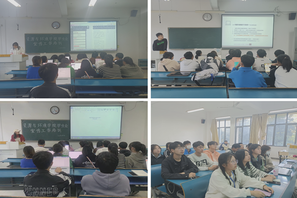 为了进一步加强资源与环境学院宣传工作,培养新成员的工作能力,资源与环境学院学生会于10月19日和10月23日分别在新知楼A109、新知楼A207开展宣传工作培训。宣传部负责人汪雨情、邹琦,易班工作站负责人王欣星、刘鑫鑫、陈坤,地信212李卓出席本次会议。宣传部、易班工作站以及志愿者中心宣传部全体成员参加此次会议。
