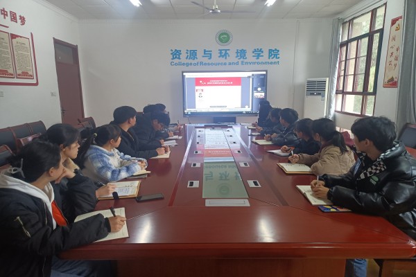 为深入学习党的二十大精神,12月8日下午,资源与环境学院于学院会议室开展了党的二十大精神系列学习活动——思政老师给学生党员讲党的二十大精神。马克思主义学院教师戴婧佼、资源与环境学院地理信息科学专业学生党支部书记王丽萍出席了本次活动。地理信息科学专业学生党支部全体学生党员参加了本次会议。会议由戴婧佼主讲,王丽萍主持。