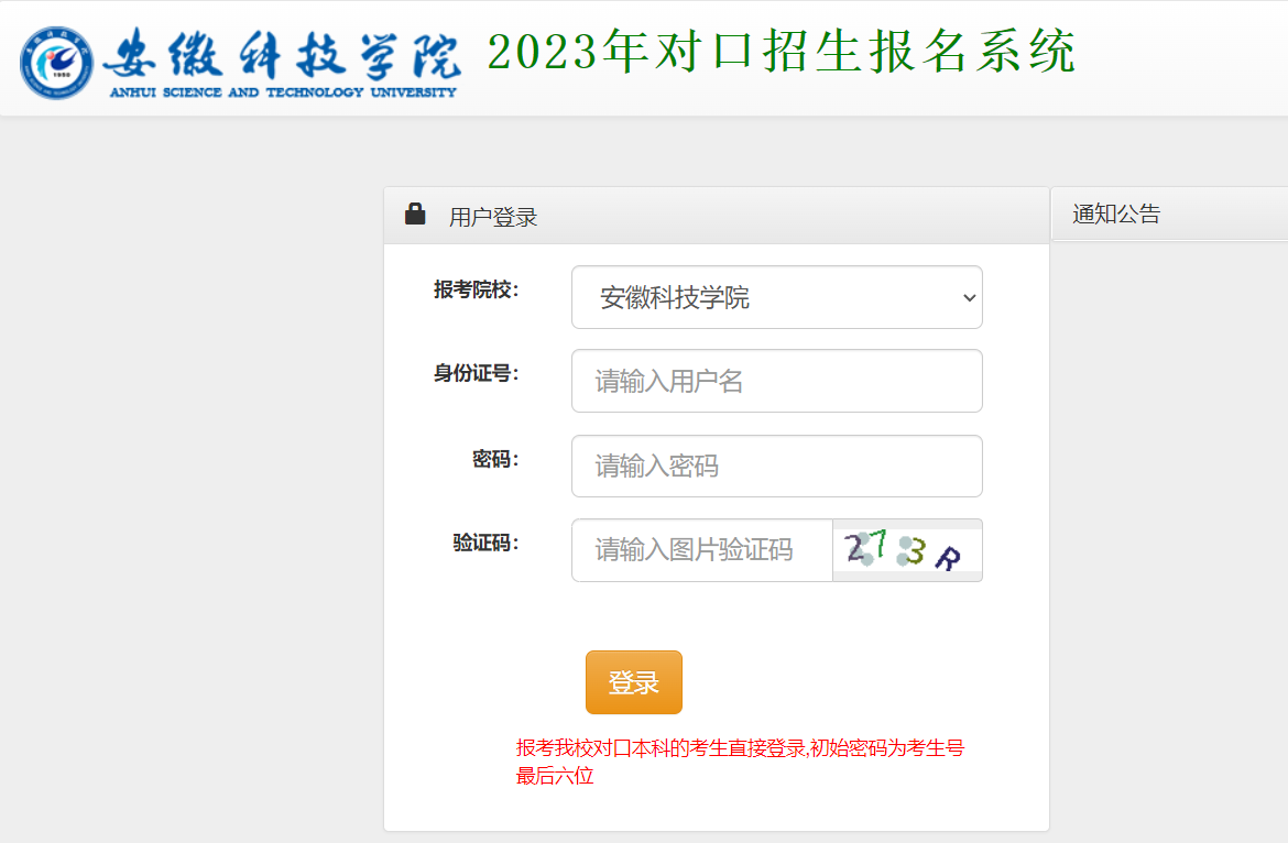 第一步:请在电脑端登录安徽科技学院2023年对口报名系统。网址为:http://zsbexmprint.ahstu.edu.cn/dkbm/