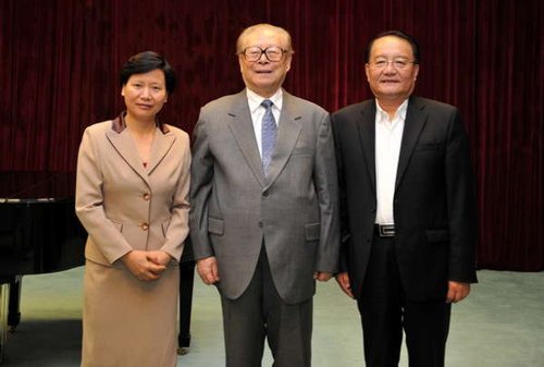 (2012年10月9日,原国家主席江泽民会见我校校友、上海水产大学校长潘迎捷(右一))